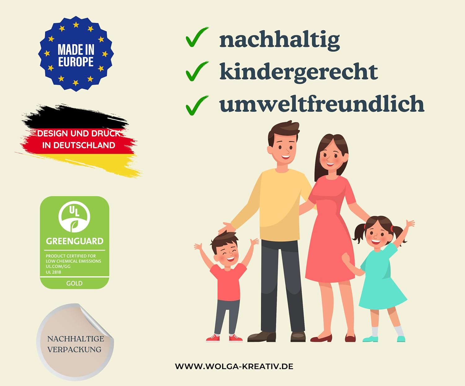 Der hochwertige Druck mit GREENGUARD Gold zertifizierter Tinte ist umweltfreundlich, kindersicher und farbstabil – perfekt für kleine Naturliebhaber.